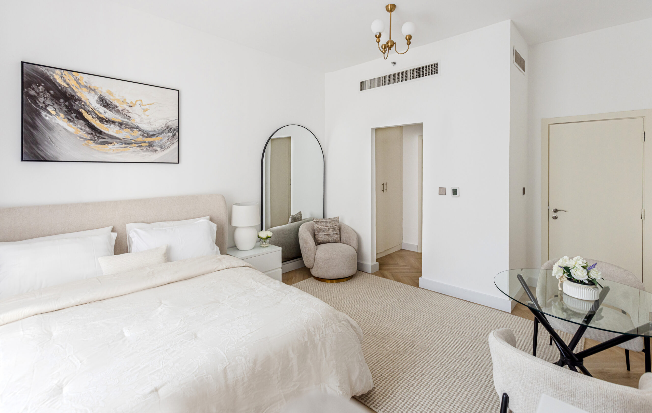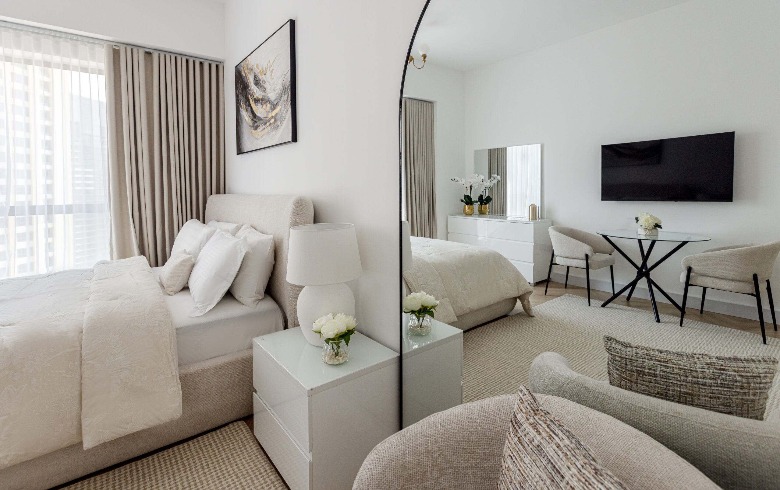 اكتشف الراحة والأناقة في هذا الاستوديو المصمم بعناية والذي يوفّر إطلالات هادئة على دبي مارينا الأيقونية. يقع هذا المكان المعاصر في قلب مساكن شاطئ جميرا (JBR)، وهو مثالي للمسافرين بمفردهم أو الأزواج أو ضيوف الأعمال الباحثين عن إقامة أنيقة ومركزية مع وصول سهل إلى أفضل ما في دبي.